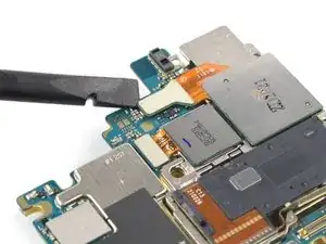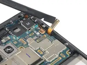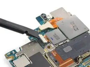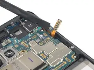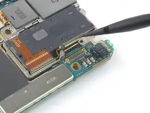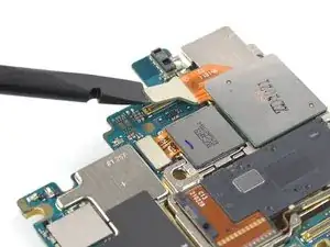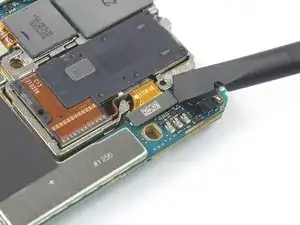 Используйте лопатку, чтобы отсоединить NFC-антенну, поддев разъём и подняв его прямо вверх из гнезда.