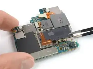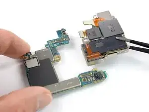 Используйте пинцет, чтобы отделить материнскую плату от узла задней камеры.
