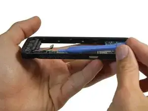 Используйте медиатор, чтобы отжать боковые и нижнюю части дисплея, проводя медиатор через корпус телефона.