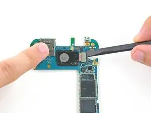 Снимите тыловую камеру с материнской платы.
