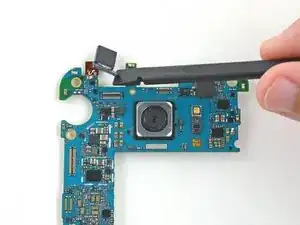 С помощью лопатки подденьте разъём тыловой камеры от материнской платы.
