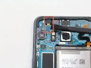 Отключите гибкий кабель фронтальной камеры от материнской платы, используя плоский конец лопатки.