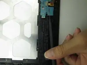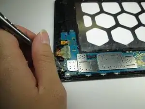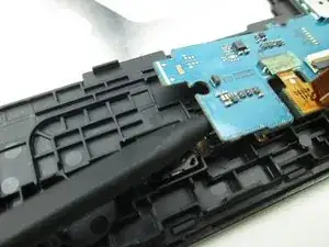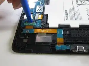 Используйте пластиковый инструмент для открытия, чтобы поддеть два разъема рядом с портом зарядки с материнской платы.