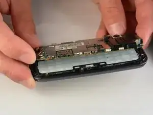 Сдвиньте аккумулятор в направлении аудиовыхода, одновременно приподнимая его вверх и от телефона.