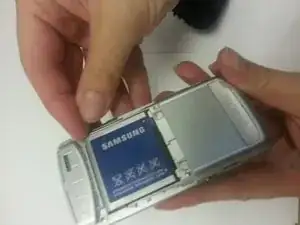 Извлеките аккумулятор, зацепив его пальцем за верхний левый или правый угол