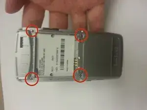 Открутите два винта Phillips длиной 0,4 см, расположенные под логотипом Samsung