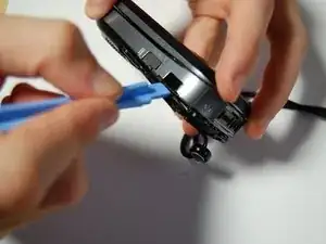 Используя инструмент для поддевания, снимите пластиковую деталь, закрывающую микрофон.