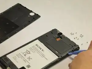 Чтобы снять внутреннюю крышку, воспользуйтесь пластиковой лопаткой и аккуратно отсоедините крышку от телефона, как показано на изображении.