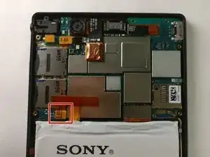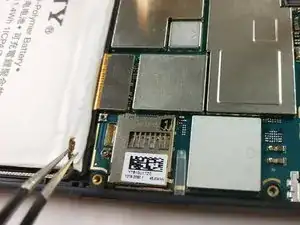С помощью пинцета найдите разъем батареи и аккуратно потяните вверх, чтобы отключить его.