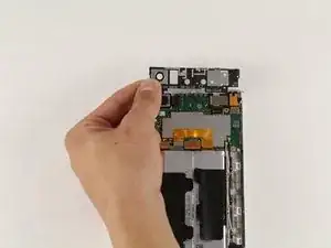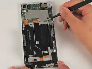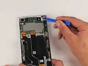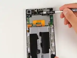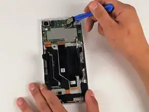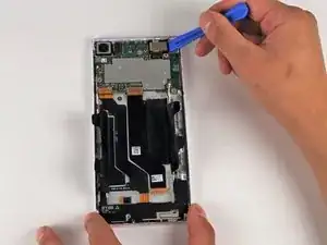 Вставьте инструмент iFixit между задней камерой и материнской платой и осторожно поднимите вверх.