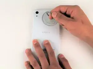 Поднимайте с помощью инструмента iFixit, пока задняя камера не будет удалена из устройства.