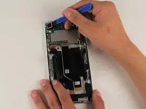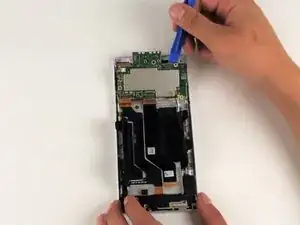 Поднимите с помощью инструмента iFixit, чтобы удалить материнскую плату из устройства.