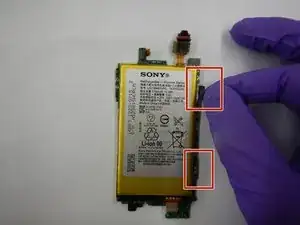Медленно вытащите две ленты батареи, расположенные справа от батареи.