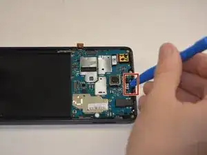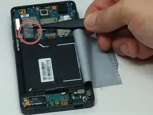 Вставьте пластиковый инструмент для открытия между материнской платой и внутренней частью телефона в паз над материнской платой.