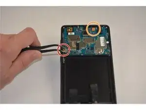 Используйте пинцет, чтобы аккуратно отсоединить соединения, проходящие над аккумулятором и подключённые к материнской плате.