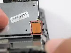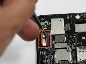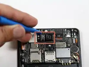 Отключите основную (заднюю) камеру от материнской платы, вытащив пресс‑фит разъём слева от неё.