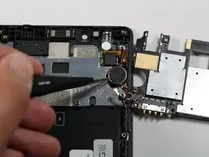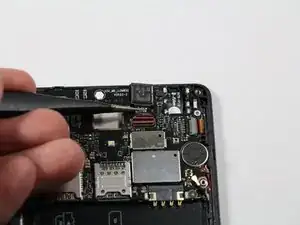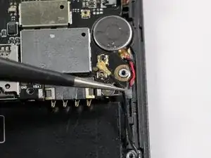 С помощью пинцета отделите вибромотор от рамки телефона.