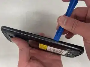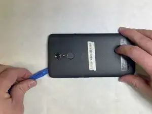Начиная с одного угла, подденьте пластиковую лопатку или инструмент под пластиковую заднюю крышку, чтобы отщёлкнуть защёлки, соединяющие крышку с корпусом телефона.