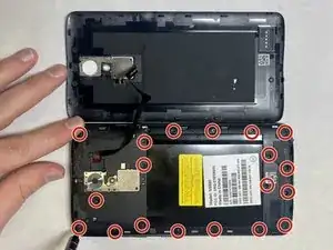 Снимите все девятнадцать винтов JIS #00 длиной 3,4 мм по периметру задней части.