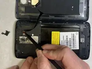 Используйте нейлоновую лопатку, чтобы приподнять пресс‑разъём и освободить ленточный кабель от основной части телефона.