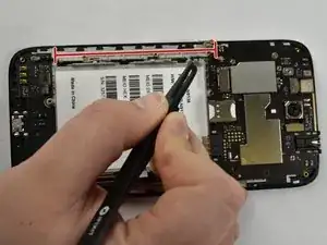 Используйте инструмент iFixit, чтобы поддеть наклейку в месте расположения кнопок громкости и питания с обеих сторон.