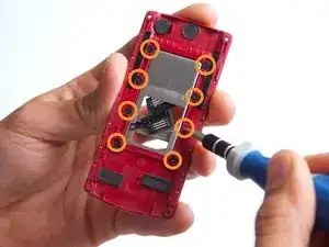 Выкрутите восемь винтов Phillips #000 (1 мм) на обратной стороне, в месте расположения механизма слайдера.