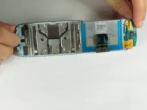 Нижняя сторона платы прикреплена к телефону чёрной лентой. Вы не сможете полностью снять плату, но получите доступ к кнопкам клавиатуры, расположенным на её нижней стороне.