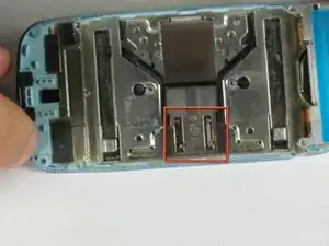 Используйте лопаточку между этим металлическим прямоугольником и корпусом телефона, чтобы разъединить две половины телефона.