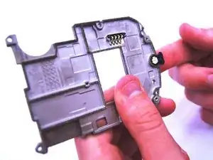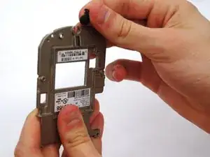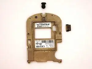 Отверткой Torx T6 отвинтите один винт 1/8 дюйма, который крепит верхнюю металлическую накладку к большей металлической скобе. Отложите винт и накладку в сторону.