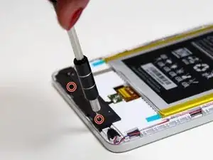 Удалите два винта длиной 3 мм с нижней чёрной панели.