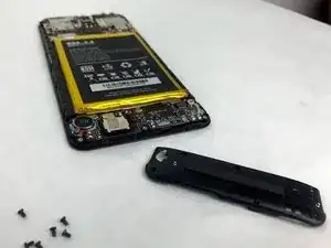 После снятия винтов необходимо удалить нижнюю пластиковую крышку, чтобы получить доступ к остальной части внутренностей телефона.