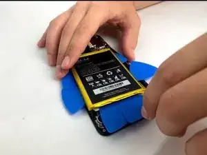 Используйте медиаторы так, чтобы одновременно приподнимать батарею и соскребать клей с батареи или корпуса. Будьте осторожны, чтобы не согнуть и не повредить батарею — она в конечном итоге извлечётся из корпуса.