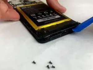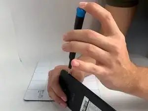 Возьмите пластиковый инструмент для вскрытия и проведите им под всей стыковой линией, разделяющей экран и пластиковую заднюю панель телефона.