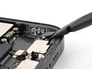 Используйте трёхгранную отвёртку Y000, чтобы выкрутить винт длиной 1.0 мм, фиксирующий среднюю крышку разъёма.