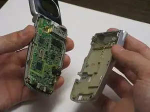 Аккуратно разъедините две части и отложите заднюю крышку в сторону.