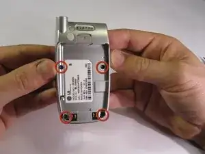 Используйте отвертку Torx T6, чтобы выкрутить четыре винта на задней части телефона.