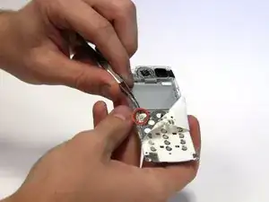 Удалите сборку печатной платы/фронтальной панели с задней части телефона.