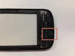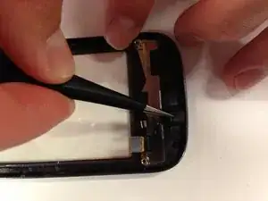 Вставьте пинцет в отверстие и зажмите им между ЖК-дисплеем и серым пластиком.