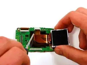 Используя небольшую крестовую отвертку, аккуратно подденьте ЖК-экран и оторвите его от платы.