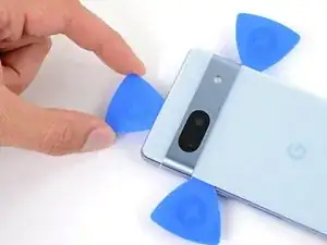 Проведите медиаторами от планки камеры вниз по длинным краям задней крышки, чтобы разъединить любой клей, который мог снова схватиться.