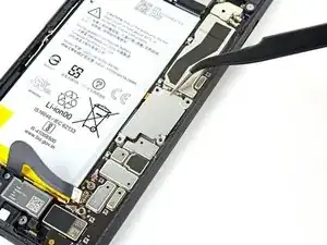 Выдвиньте разъём дисплея из отверстия рядом с материнской платой, чтобы отделить сборку дисплея от остальной части телефона.