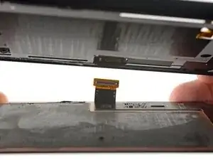 Пока не снимайте сборку полностью, так как кабель дисплея всё ещё проложен через рамку телефона.