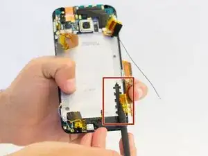 Отогните ленту Каптона от оставшихся трёх разъёмов ZIF, затем поднимите поворотные фиксаторы на разъёмах ZIF с помощью лопатки или ногтя и вытяните кабели.