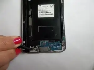 Поднимите USB-порт из фронтальной сборки с помощью пинцета.