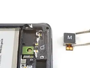 Используйте крестовую отвертку Phillips #00, чтобы вынуть пять винтов длиной 3,9 мм, крепящих громкоговоритель и нижнюю среднюю раму.