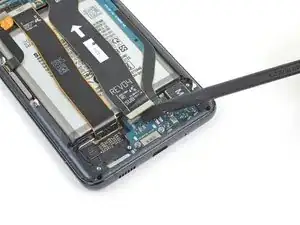 Используйте лопатку, чтобы поддеть и отсоединить разъём катушки беспроводной зарядки.
