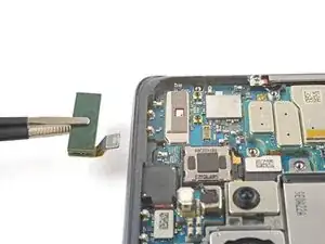 Подденьте и отсоедините гибкий кабель фронтальной камеры от материнской платы.