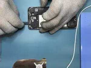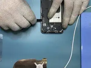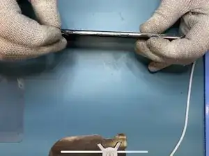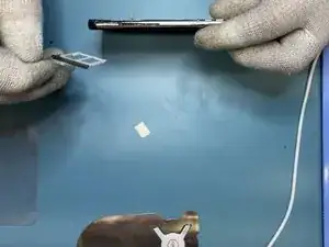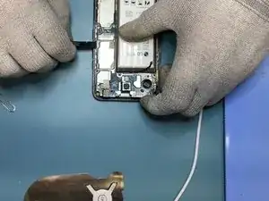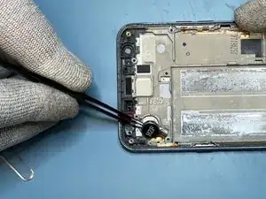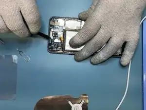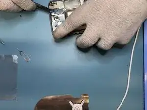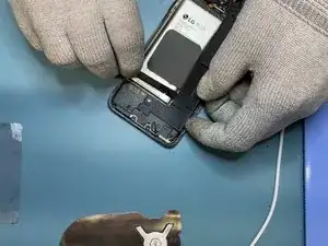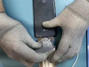Снова прогрейте переднюю часть телефона, чтобы ослабить клей под разговорным динамиком.