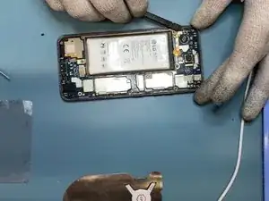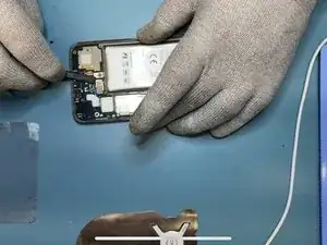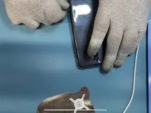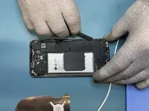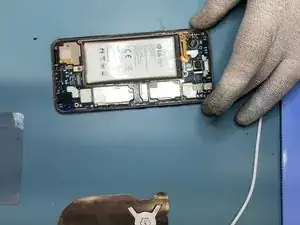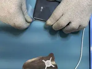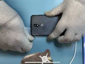 Далее прогреем лицевую часть телефона, чтобы ослабить клей под аккумулятором.