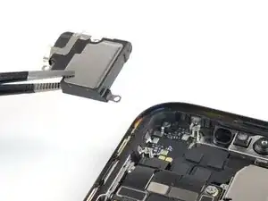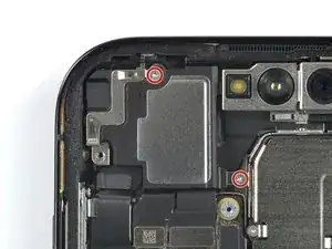 Используйте крестовую отвёртку, чтобы удалить два винта длиной 1,6 мм, удерживающих динамик слухового отверстия.